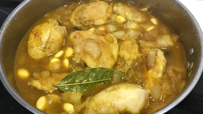 Deja cocer durante una hora o hasta que la carne del pollo se suelte con facilidad del hueso.