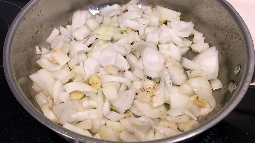 Sofríe el ajo y la cebolla.