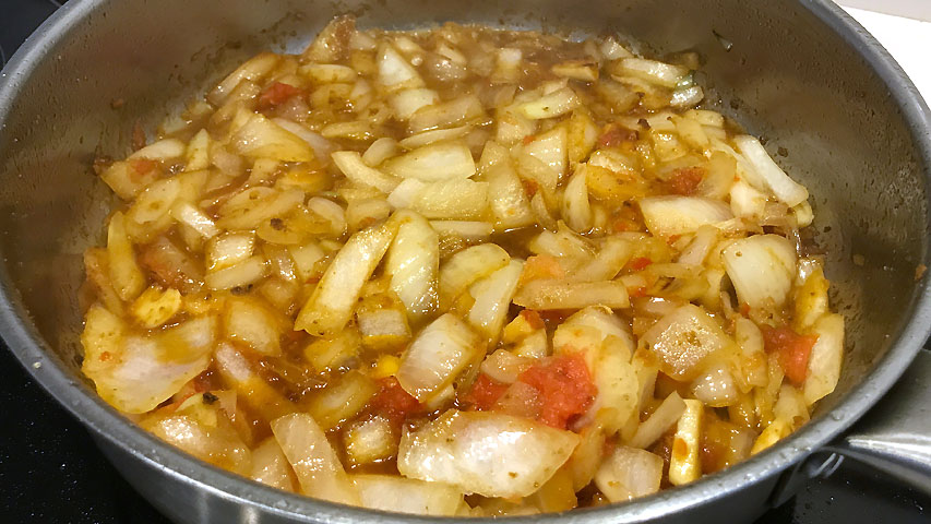 Cuando tome color la cebolla incorpora el tomate.