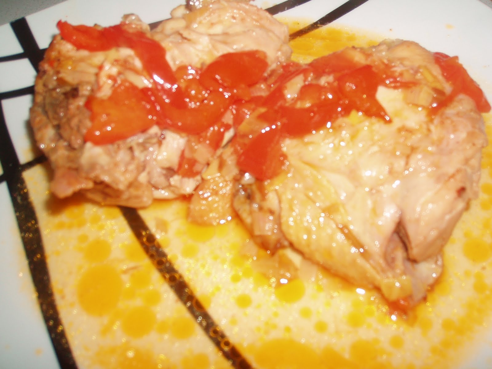 ELABORACIONSe le pide al carnicero que nos trocee el pollo ecomo nos guste.Se trocea el puerro y se reserva.Se parte el pimiento en tiras y se reserva tambienSe pone en la olla express un buen chorro de aceite.Se dora el pollo y se va sacando para una fuente.Cuando terminamos de dorar elpollo en el mismo aceite echamos la verdura y la dejamos 2-3 minutos mientras revolvemos.cuando pasa el tiempo añadimos el medio vaso de ron y dejamos 1 minutopara que se evapore el alcohol.Añadimos el pollo a la olla.Añadimos 1 vaso de agua y un poco de sal.Tapamos la olla exprees y dejamos que suba el boton del tiempo y dejamos 12 minutos.El tiempo hay que recordar que de una marca a otra varia asi que mejor comprobar el tiempo en cada manual (yo tengo marca fissler).