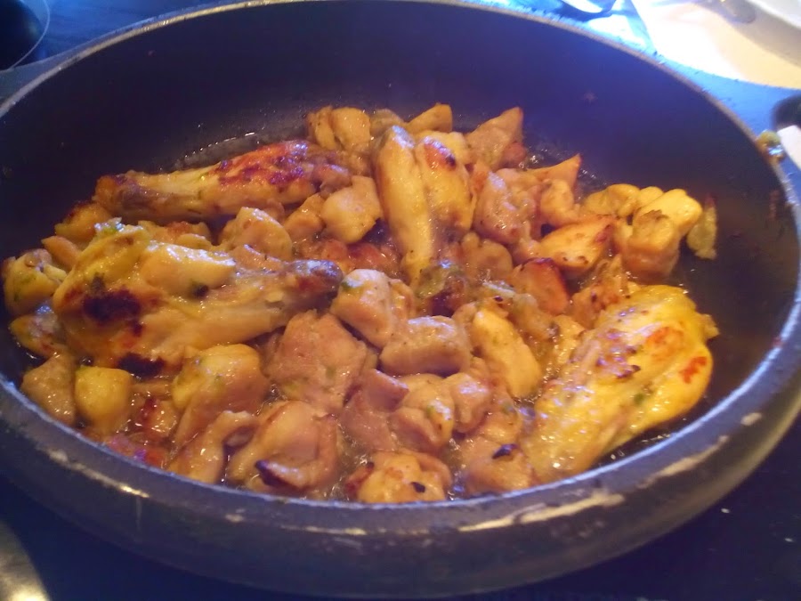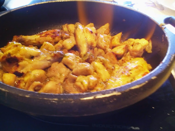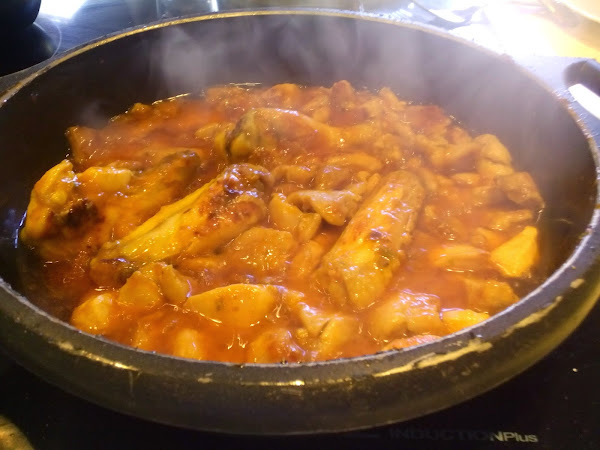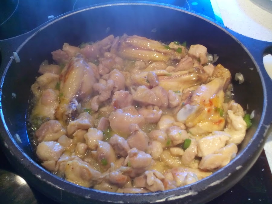 Pollo ( yo lo preparé con restos que tenía, alitas de pollo, muslos deshuesado y cortado en trocitos)