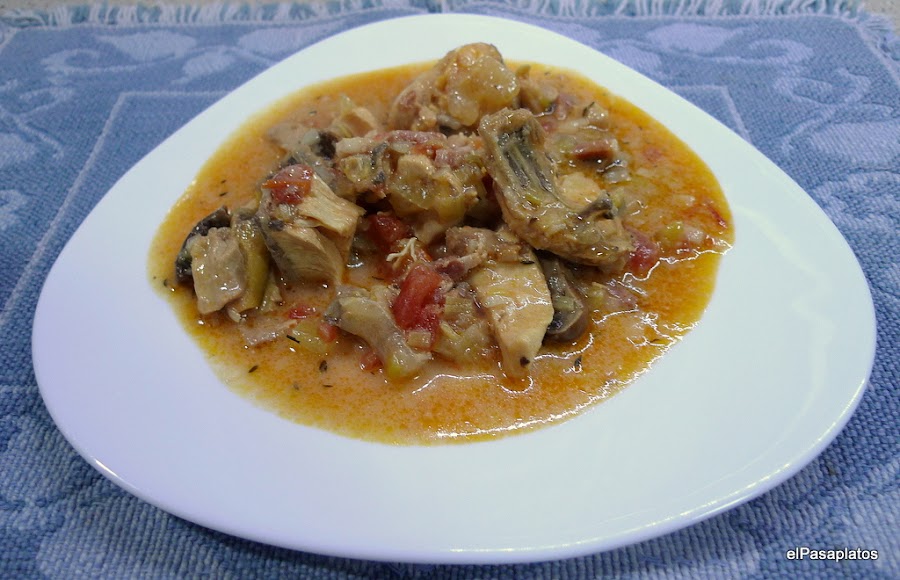 NOTAS.- Esta receta se puede preparar en olla rápida con 15/20 minutos para la primera cocción. Si se quiere una salsa fina, se puede retirar el pollo y triturar.