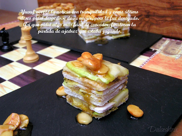 Decidió comentarle al Alcaide que podían degustar mientras terminaban la partida de ajedrez una última comida. Y pensó en un plato delicioso para que el Alcaide se diera un atracón. De este modo su digestión sería pesada y su habilidad para el juego del ajedrez se vería mermada.
