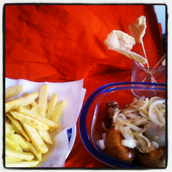 Primero he metido en una bolsa que viene con el sobre de maggi, los muslos dentro he echado el condimento de maggi, se cierra la bolsa se le hacen unos agujeros para que salga el vapor, y 50 min al horno con calor en la parte de abajo y arriba . Pelamos y cortamos las patatas, para hacer con ellas unas patatas fritas, y les echamos un poco de sal.