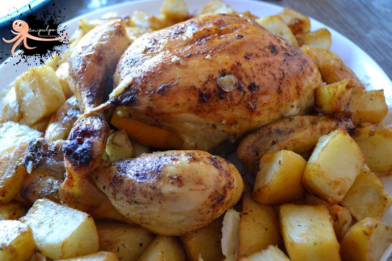Pollo asado al limón con patatas, muy jugoso