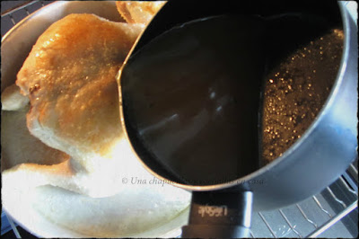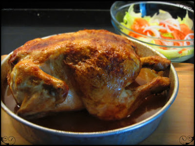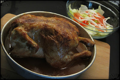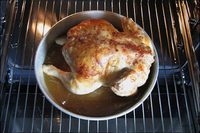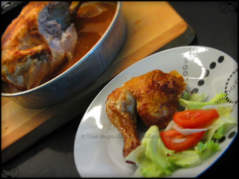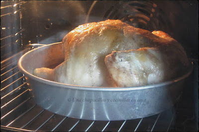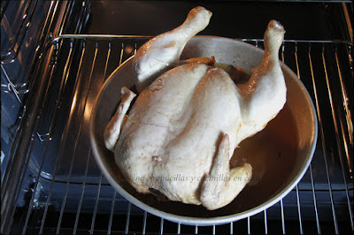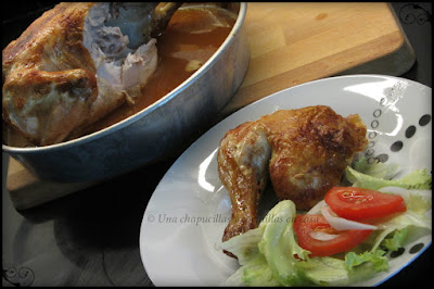 Una vez caliente el horno, introducimos el pollo y cuando lleve 15 minutos, verter la salsa por encima y seguir horneando otros 20 minutos mas por ese lado.