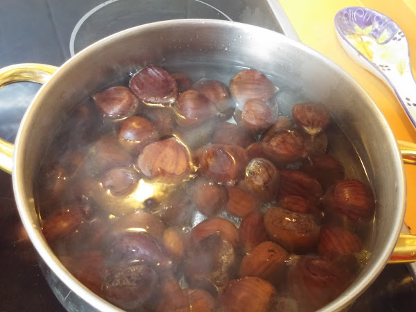 En una cacerola vamos a cocer las castañas durante unos 5 minutos.