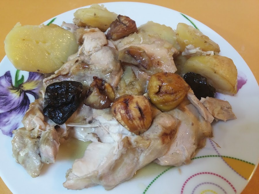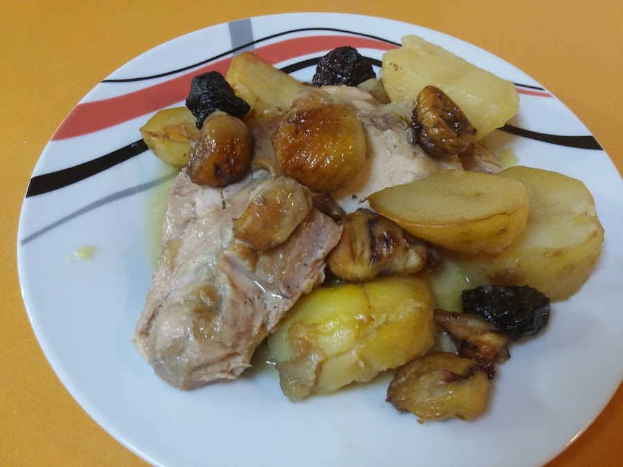 Estamos en época de castañas así que es una receta muy apropiada para esta estación del año. Podéis usar castañas ya peladas si queréis ahorrar tiempo, porque la única "dificultad" de esta receta es el rato que hay que emplear pelando las castañas.