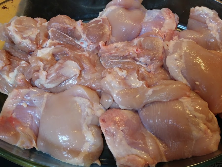 En una fuente apta para horno vamos a poner los contramuslos salpimentados.