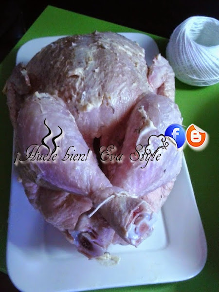 5.- Cuando lleve 40 minuto de coción, le damos la vuelta al pollo para que se dore también.