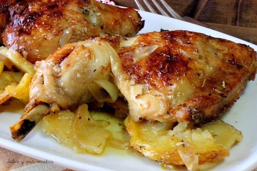 Hoy vamos a comer pollo asado al horno con hierbas provenzales y patatas, veréis que rico queda...