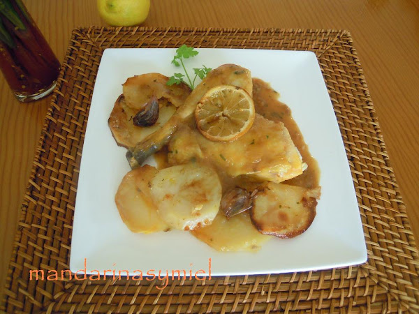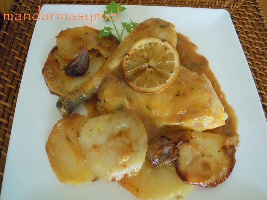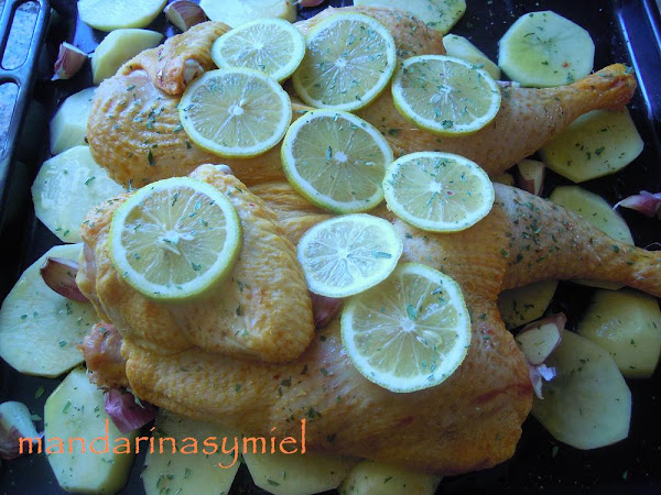 He cambiado la forma de hacer las patatas, Lorraine las pone en una bandeja de horno a parte del pollo, yo siempre las pongo debajo, se quedan muy sabrosas con los jugos que suelta el pollo.