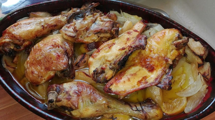 - Dar la vuelta al pollo y hornear 30 minutos más.