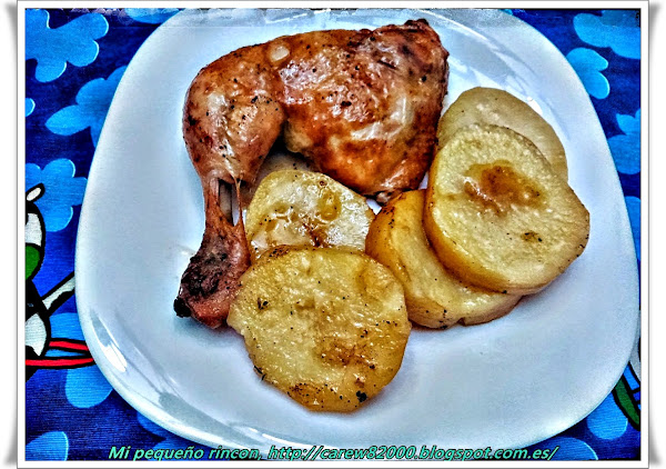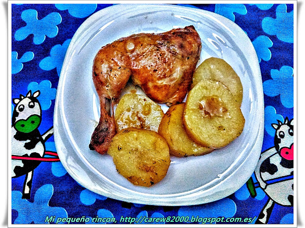 Sacamos del horno y lo tenemos listo para servir junto con las patatas, queda buenísimo.