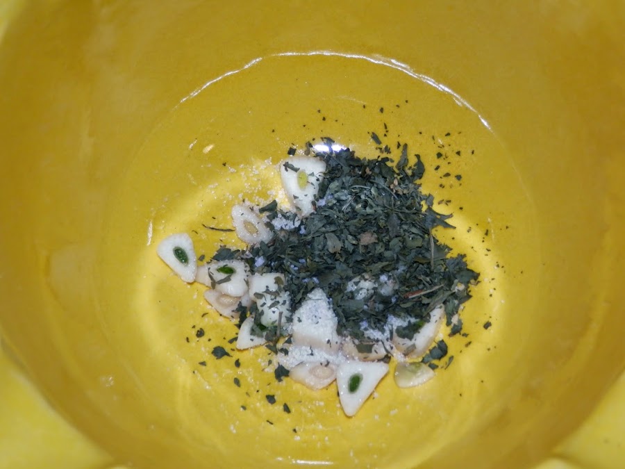 Podemos poner el día de antes el pollo en un poco de adobo que consistirá en picar el ajo y el perejil, añadir la pimienta y la sal, mezclar todo con el vino y un poco de aceite, para que esté más jugoso y tenga más sabor (esto es opcional), si no hay tiempo, va directo al horno y está también muy rico.