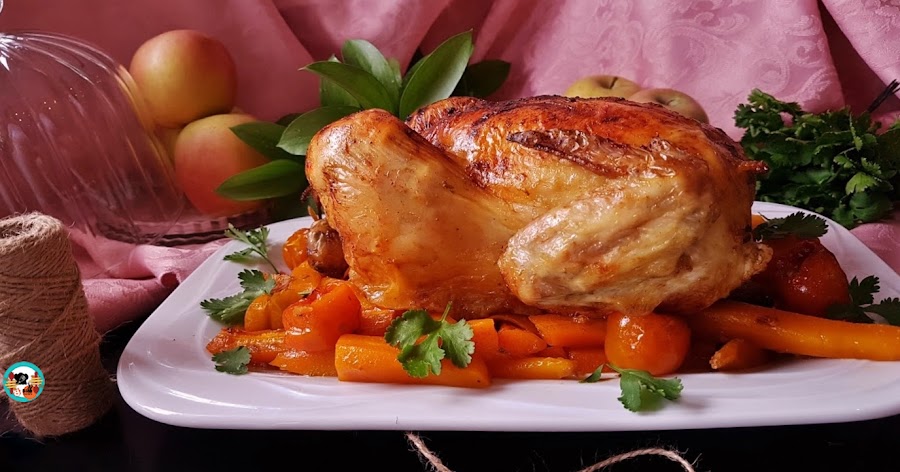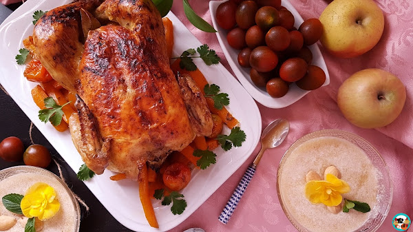 Para que el plato fuera más saludable, acompañe el pollo asado con verduras; zanahoria y tomates.