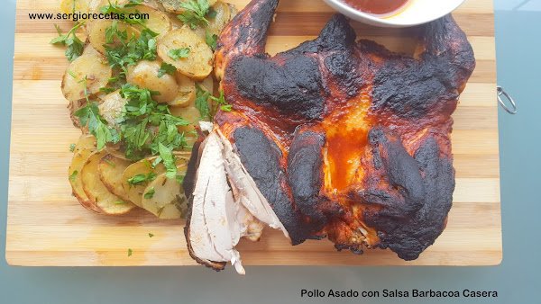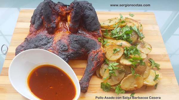 El objeto de adobar con Salsa Barbacoa el Pollo es que se haga a una temperatura más baja de lo habitual y más tiempo para que se vayan caramelizando los azucares de la salsa sobre la piel de el Pollo y así conseguir una piel muy crujiente y tostada y un interior jugoso y delicado que serviremos acompañado de unas patatas laminadas asadas con especias cajún que realzarán aún más si cabe este manjar familiar.