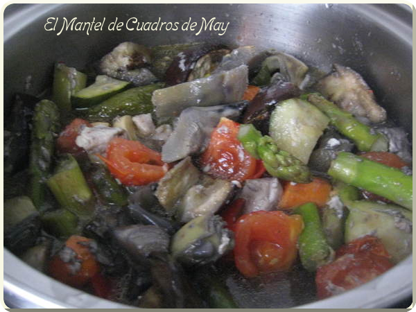 Cortar todas las verduras en trozos grandes, los ajos dejarlos enteros