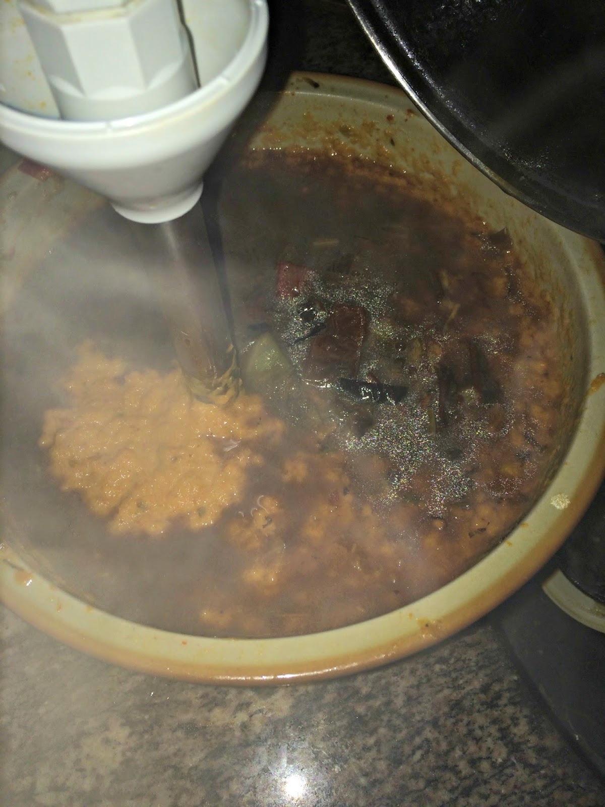 Con el puré que sobró, al día siguiente hice una crema de verduras, con caldo de pollo y un poco de mantequilla, se rebaja hasta obtener la textura deseada.