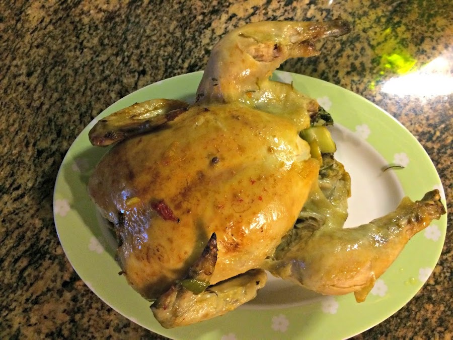 En esta ocasión no he rellenado el pollo, pero es otra opción que podéis considerar. Se puede rellenar de carne picada, huevo cocido, pasas, piñones, pepinillos y aceitunas, etc...