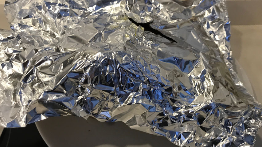 Tapa con el papel de aluminio con un agujero en el centro para que se escape el vapor y no ablande la crujiente piel del pollo.