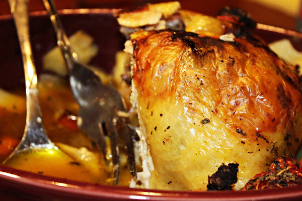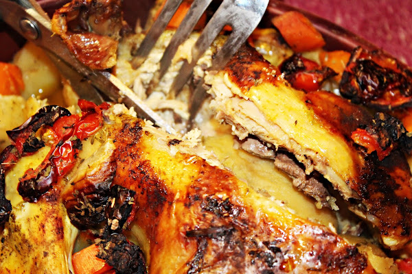 Decidimos estrenar este horno cerámico con un pollo bien hermoso, acompañado de guarnición de verduras. quedó muy rico, incluso la pechuga quedó tiernísima.