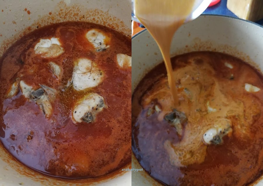 Cuando toma temperatura añadimos el pollo y la salsa triturada.