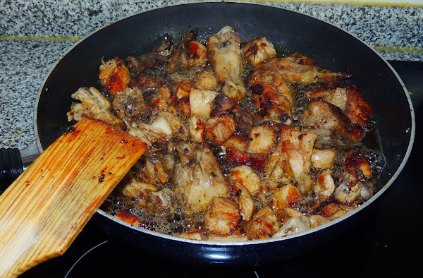 Se pone aceite a calentar en una sartén, cuando está bien caliente, se echa la carne con un poco de sal y se fríe bien.