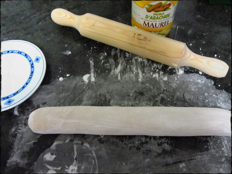 Espolvorear la mesa de trabajo con maicena y realizar un cilindro