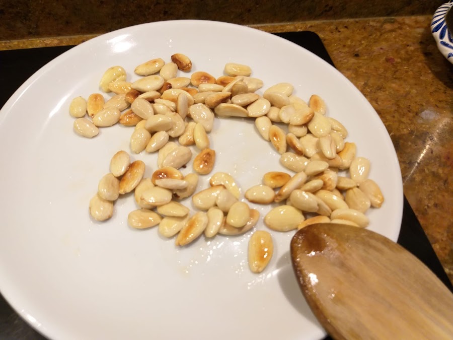 Una vez que se doran un poco las almendras las reservamos en un plato.