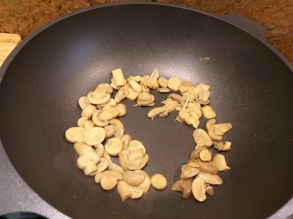 Rehogar los champiñones, yo los he puesto de lata pero creo que tendrá mucho mejor sabor la receta si los usáis frescos.
