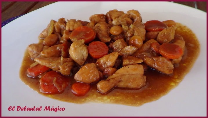 Por último, añadimos las almendras, la salsa de soja y la miel. Cocemos a fuego medio 4-5 minutos más y listo, un plato riquísimo.Fuente de la receta: Miel y Limón.