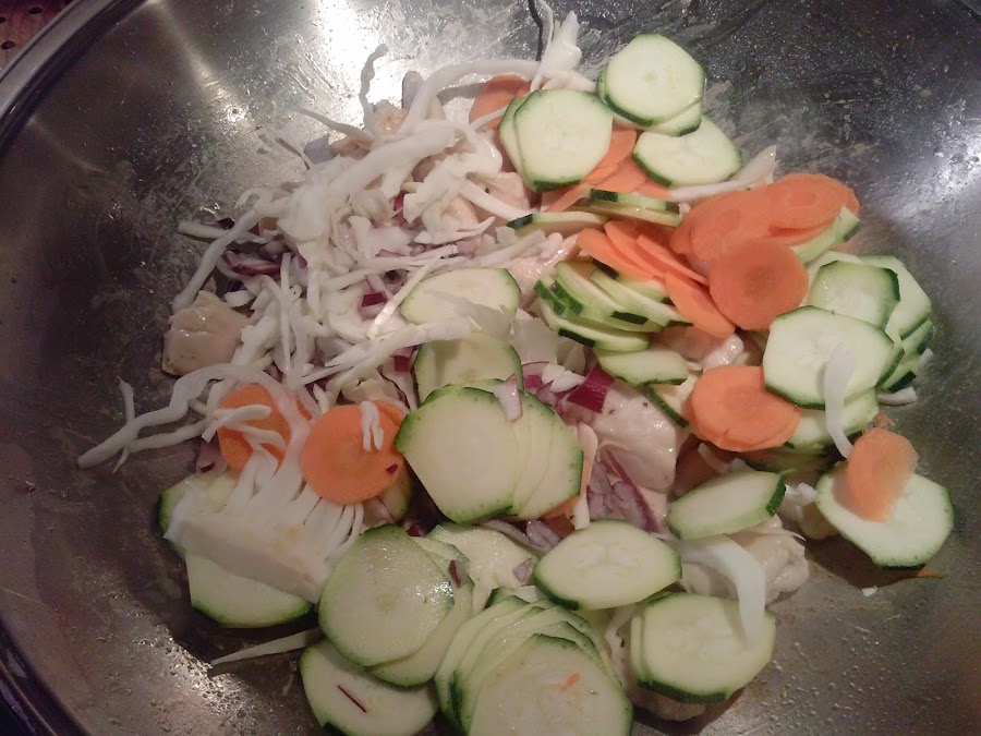 Vamos a dejar cocinar tapado durante unos cinco minutos. Las verduras quedan mejor un poco "al dente" o tiesas, como diría mi abuela.