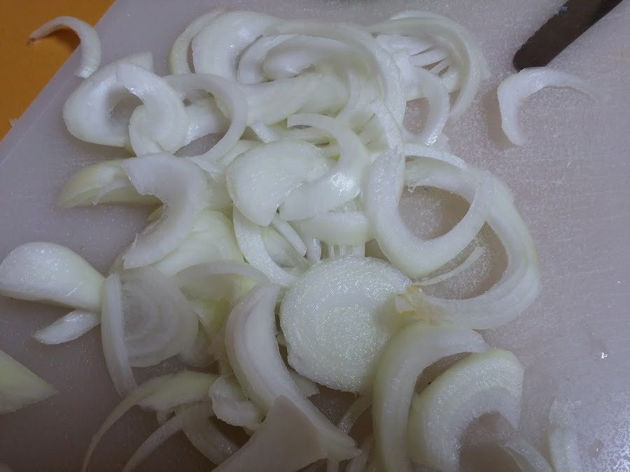 La cebolla en juliana.