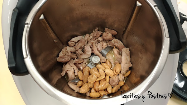 Nos atendieron muy bien, nos explicaron las ventajas de la nueva thermomix (digo nueva para mi, la máquina ya lleva en el mercado un par de años) y nos pusimos a cocinar con ella una receta de tipo oriental: Pollo con almendras.