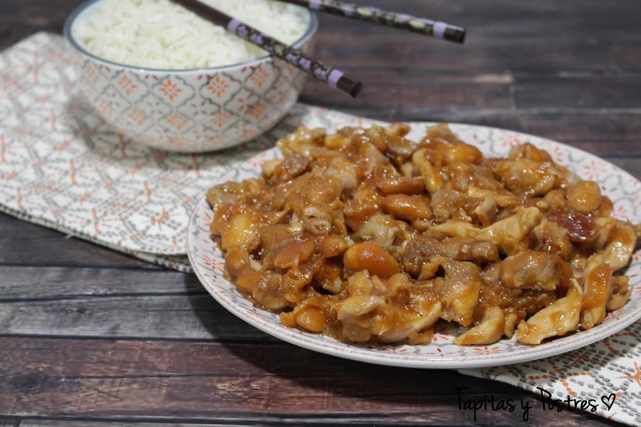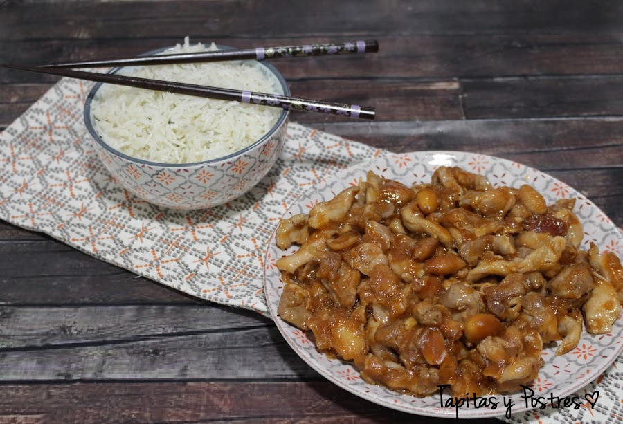 Mientras se hace el pollo, podemos ir cociendo un poquito de arroz basmati para acompañar. Incluso, para variar la receta podemos añadir unas rodajas de piña en trozos a la vez que se hace la salsa y enriquecer el plato más.