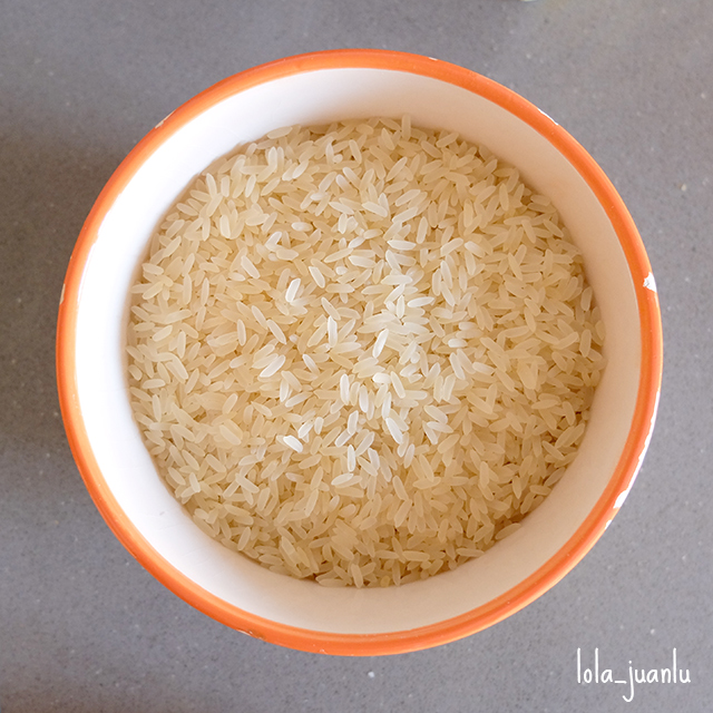 Cuando el caldo comience a hervir añadimos el arroz, mezclamos bien y colocamos la carne encima.