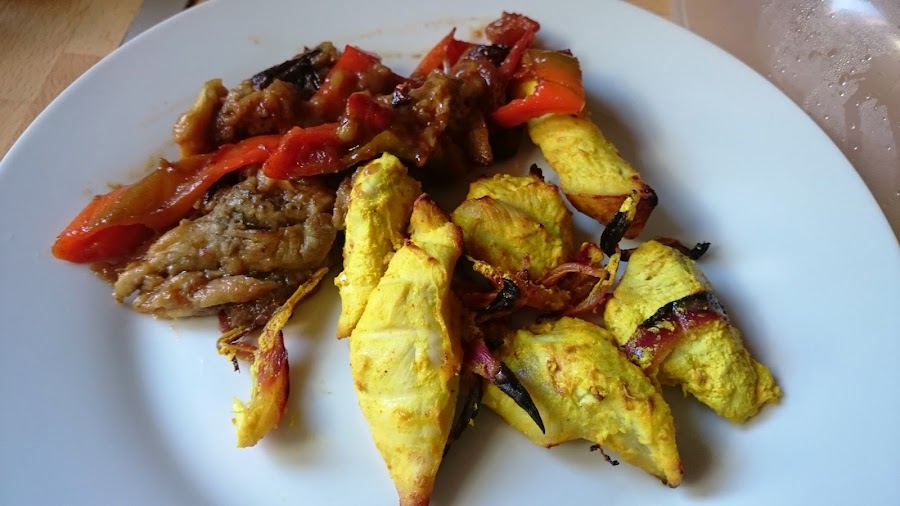 Se pueden servir con tortillas de trigo grandes, ensalada y yogur, arroz basmati, berenjenas, pimientos etc.