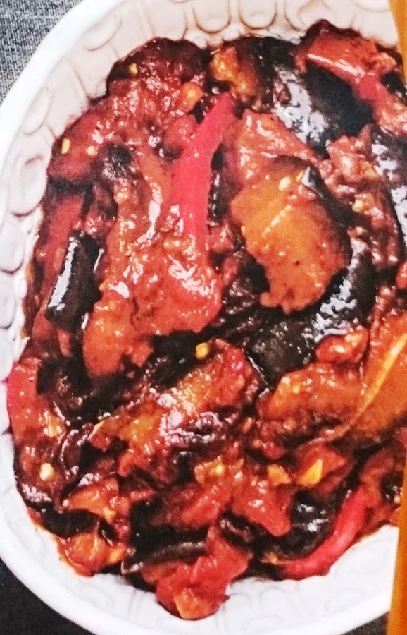 Subimos el fuego y salteamos durante 1 o 2 minutos procurando que no se queme. A continuación, ponemos el fuego al mínimo y, removemos y mezclamos con la berenjena previamente cocinada durante 8 minutos más. Apagamos el fuego pero sin retirar la cacerola del quemador para que se repose y, así se fundan sus sabores y sus aromas.