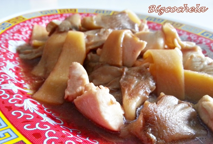 El bambú también podremos encontrar los fácilmente, vienen en unos botes ya troceados y preparados. Por lo que no tendremos que hacer prácticamente ninguna preparativo para esta receta.