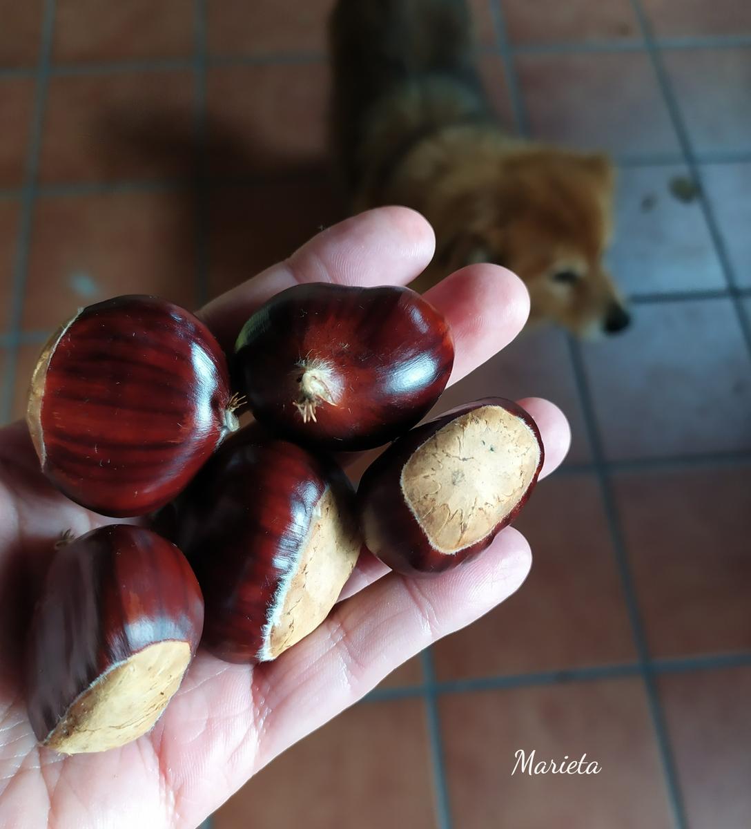Un fruto que a todos nos encanta y que solemos recolectar en abundancia cuando vamos a la aldea en esta época del año. Una parte terminan por protagonizar asadas nuestras sobremesas, pero la mayoría las congelamos bien en crudo, o escaldadas y peladas, o ya asadas también. Se conservan así perfectamente para después emplearlas en diferentes recetas tanto dulces como saladas.