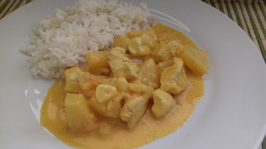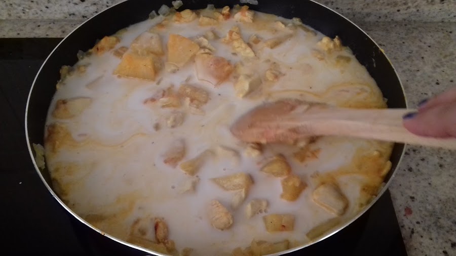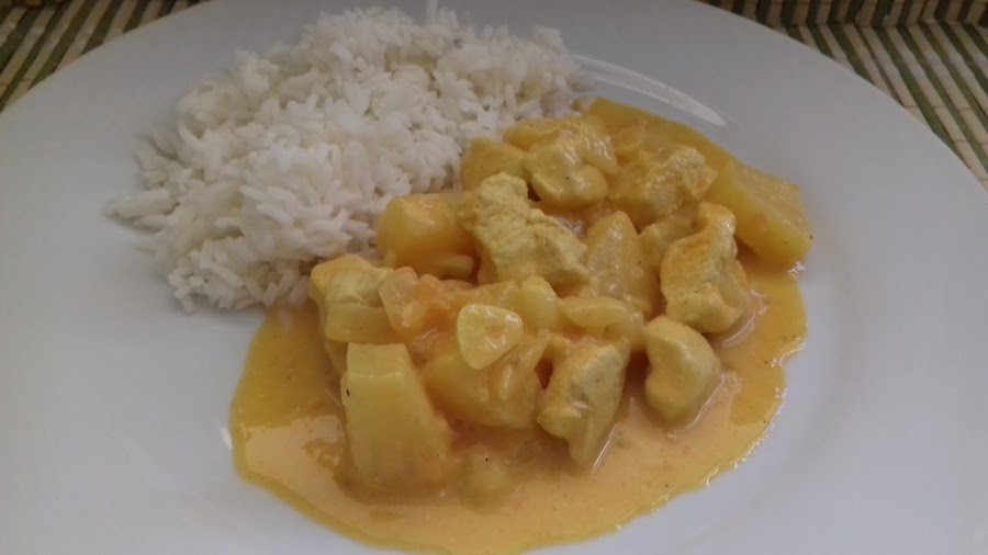 Hoy toca receta un tanto exótica pollo estilo thai con piña y coco, una receta fácil y deliciosa.