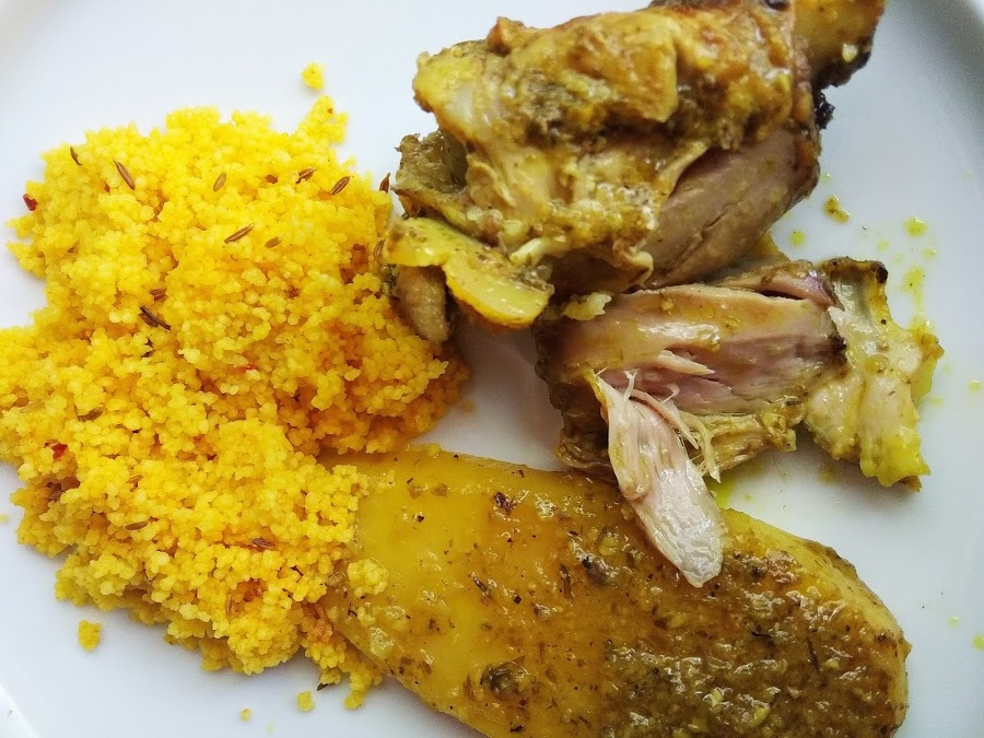Para acompañar el cordero he hecho un cuscús, que hacemos mucho en casa, con un poco de cúrcuma (ya que estamos jejeje) y otra variedad de especias ricas.