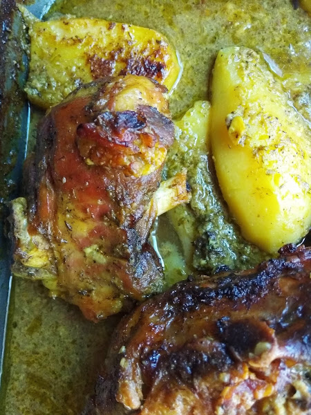 El cordero lo he hecho como siempre se ha hecho en casa, con la diferencia que ésta vez le he echado unos centímetros de raíz de cúrcuma y el resultado está a la vista, ese colorcito rico que dan ganas de chupar de la pantalla.