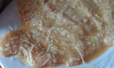 Saca las pechugas del adobo, escurre un poco, rebózalas en harina y después pasa por el huevo batido.