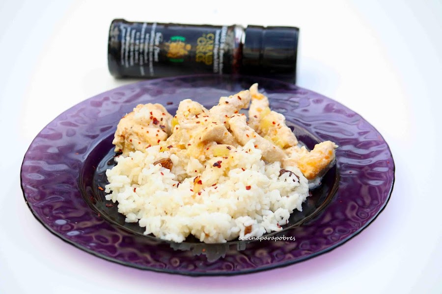 Cuando la pechuga este hecha, añadimos una cucharadita de pimentón dulce, movemos para mezclar bien y agregamos la leche de coco.