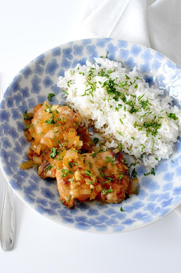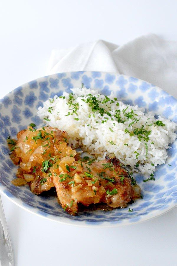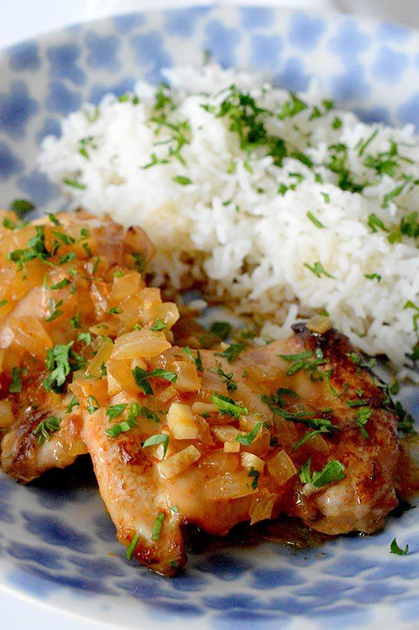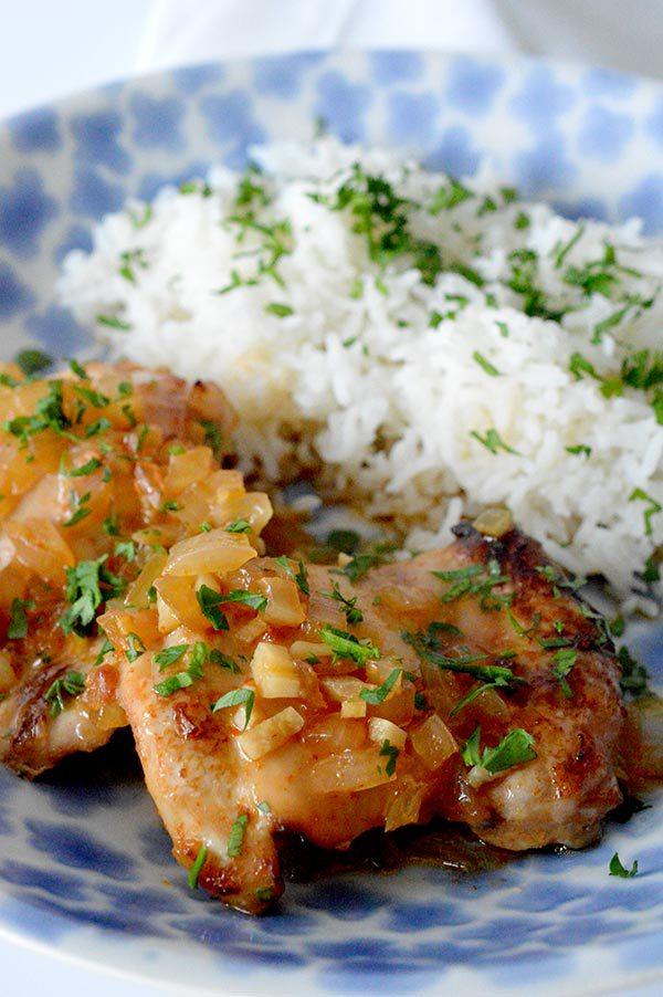 Es una receta muy fácil de hacer y sin contar el tiempo de marinado que puede ir de la media hora hasta las 24 horas, se cocina en el horno tan solo en media hora. Yo lo he acompañado de arroz basmati que cocinamos mientras el horno esta en el horno.