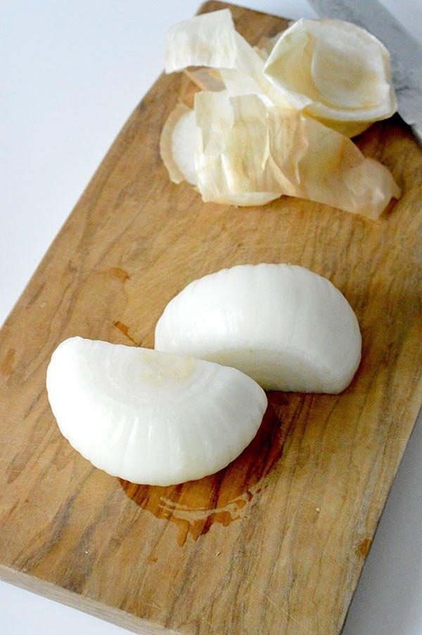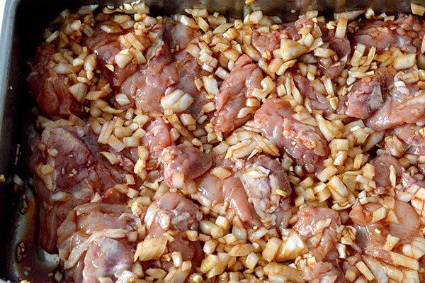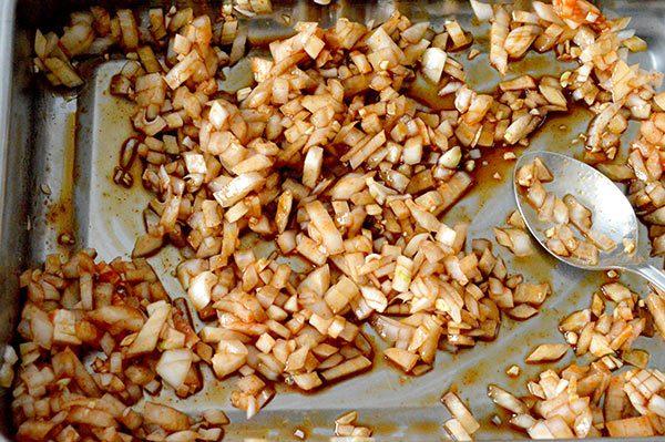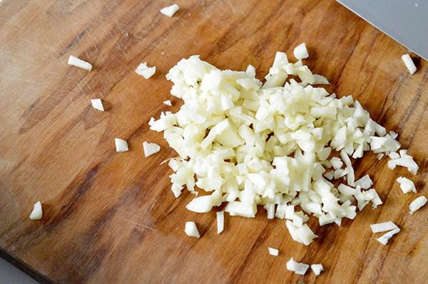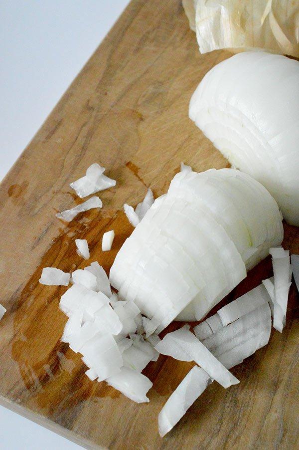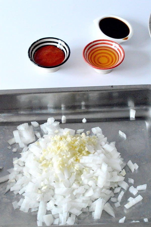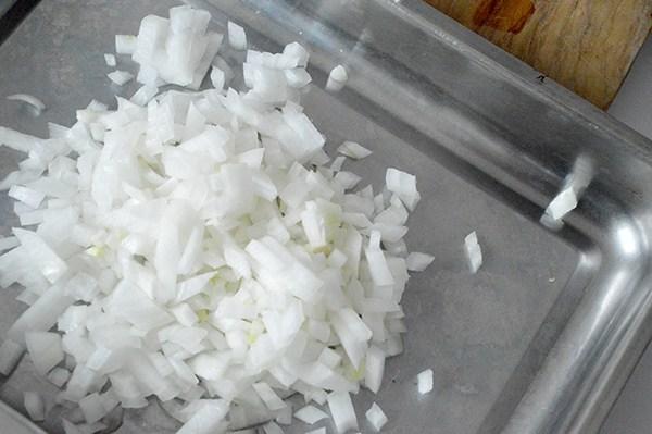 Lo primero de todo es preparar el marinado. Contamos la cebolla finamente.