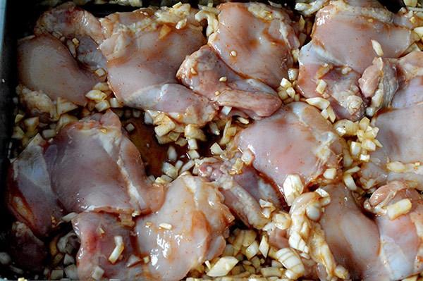 Ponemos los contra muslos de pollo en la marinada y lo dejamos de media hora hasta 24, yo los tuve unas dos horas y media.