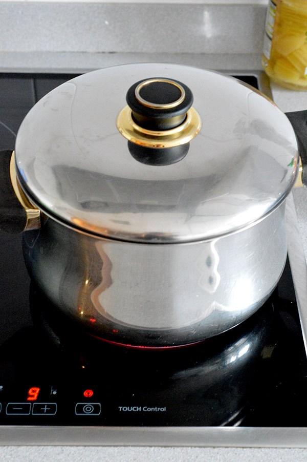 Ponemos el pollo a cocinar mientras que en una cazuela hervimos el agua para el arroz.